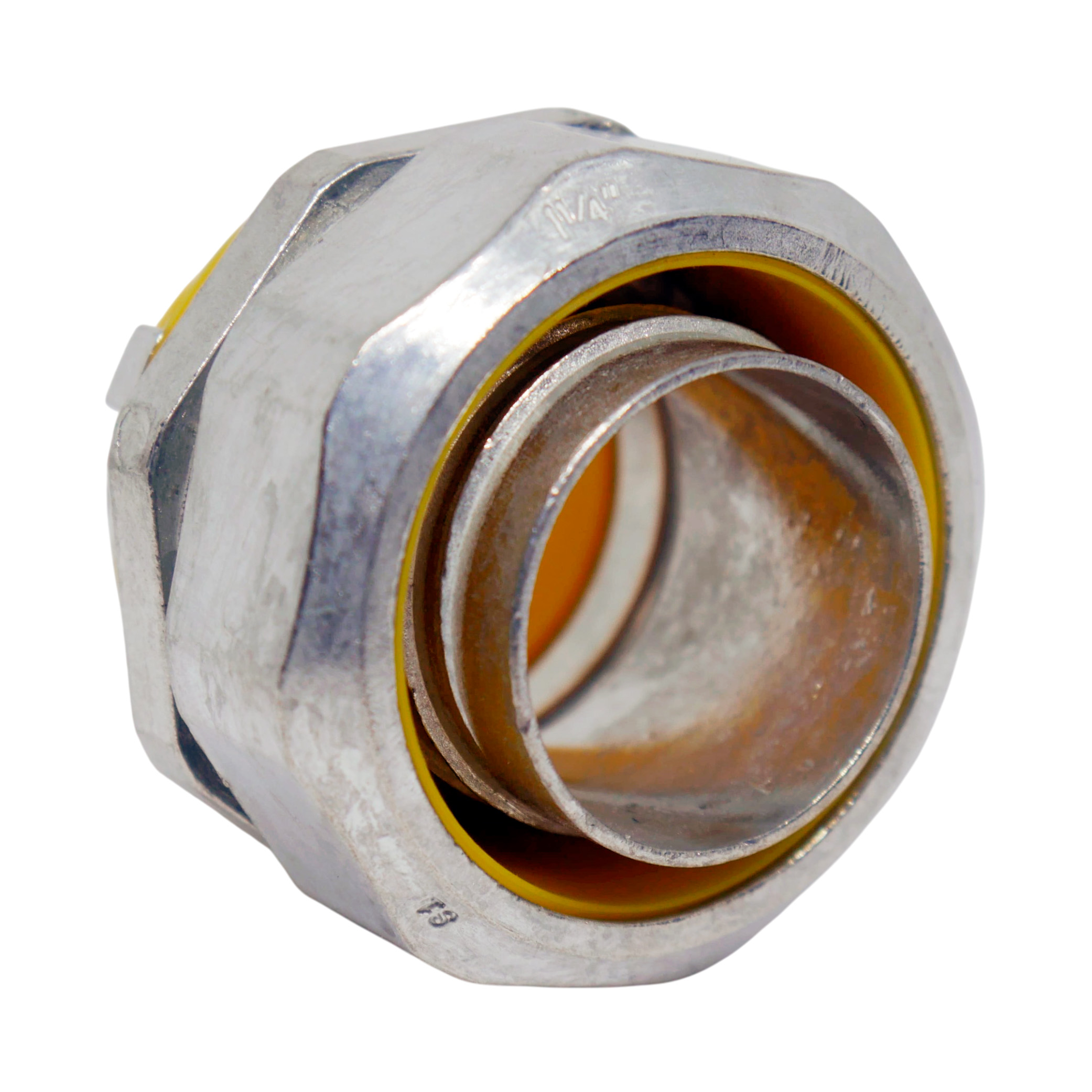 Conector recto hermético Liquid Tight 1 1/4″ de GALVANIC. Ideal para instalaciones con tubería flexible industrial.